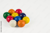 Colorful, circular chewing gum, very appealing to children. Copy space on a white background