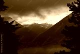 Panoramic view of cloudy mountains near Merano in Italy.