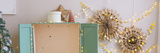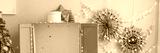 The interior of a children's room decorated for the Christmas holidays. A Christmas tree with garlands and a children's wardrobe with soft pillows.