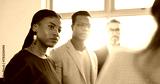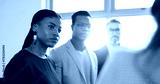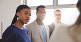 Attention, conversation and meeting with business people in office together for feedback or review. Collaboration, development and flare with employee group in corporate workplace for planning