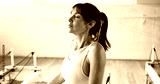 Breathing, relax and woman on reformer machine in studio for cool down exercise for wellness. Peace, equipment and calm female person with recovery on break for pilates class workout in health gym.