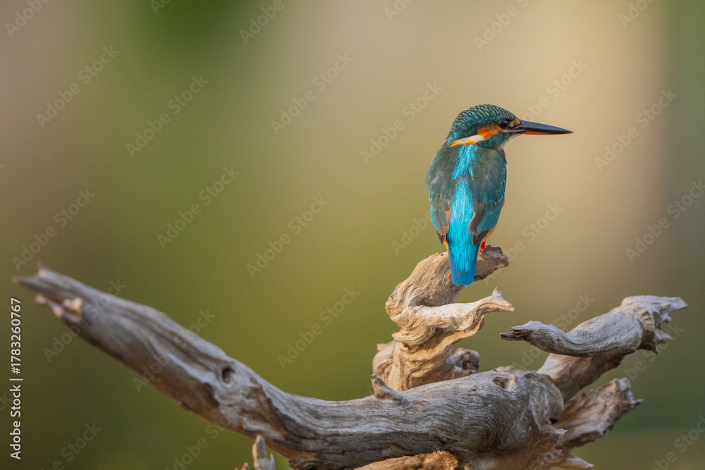 The common kingfisher in a natural pond is looking for food.
