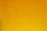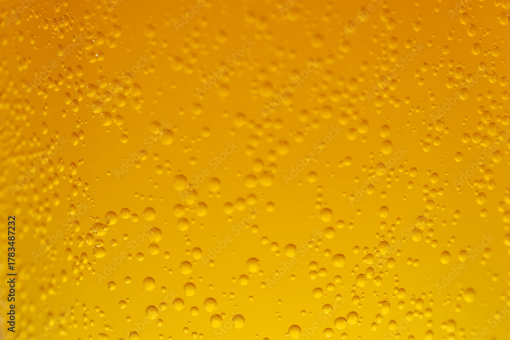 Extreme close-up of a yellow-orange carbonated liquid with rising bubbles creating a textured and bright background.