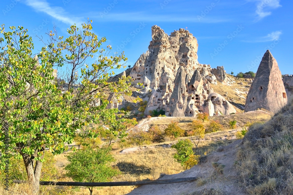 One of the wonders of the world. View of scenic geological formations and fairy chimneys in a beautiful valley, Cappadocia, Turkey