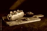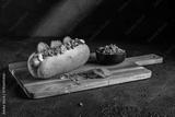 Street Food Delight Hotdog with Mustard, Mayo, and Ketchupon on Dark Background