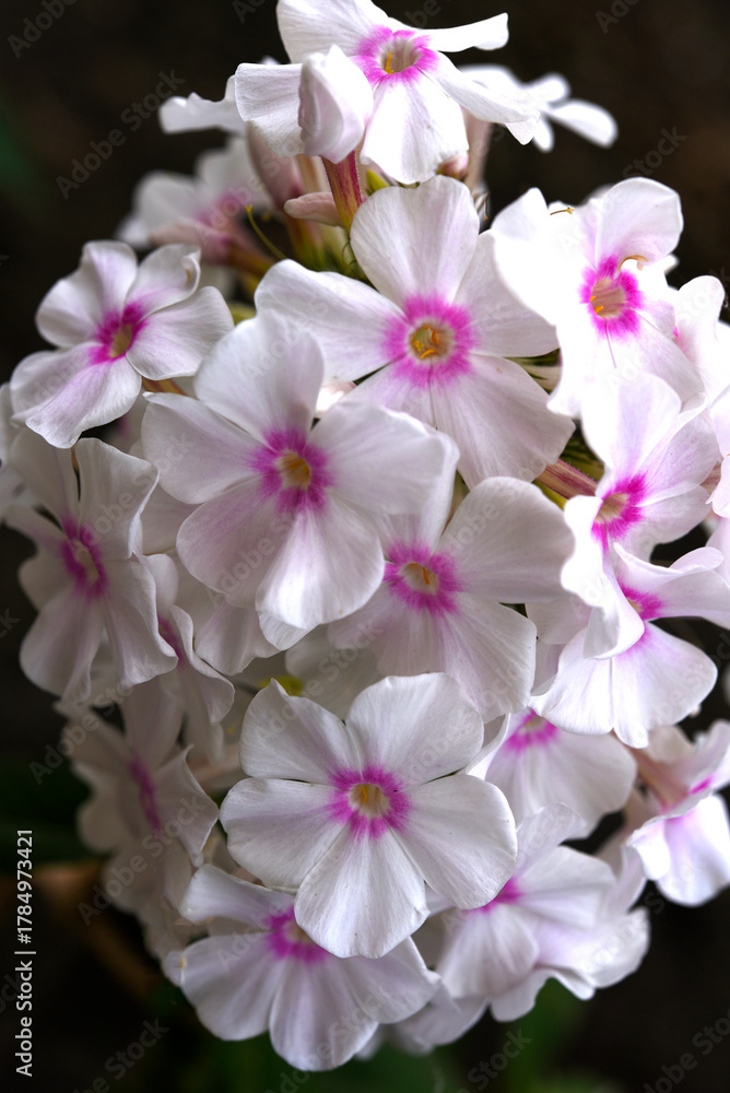 Light pink phlox flowers. A bunch of small flowers in the garden.
