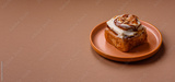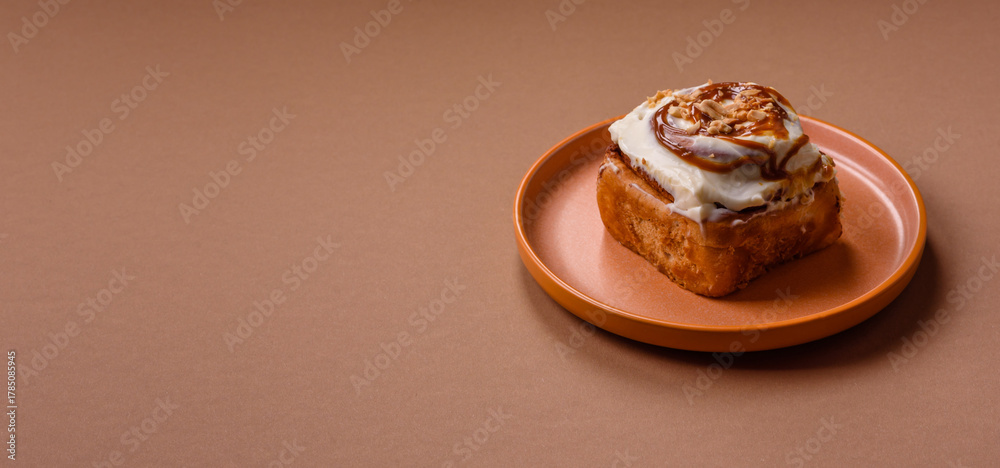 Cinnabon, a sweet cinnamon pastry, a high calorie bun or roll. Cinnabon with cinnamon