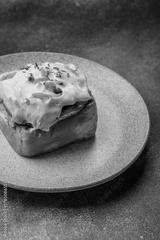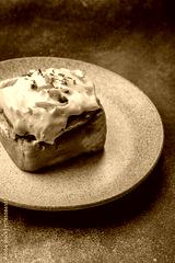Cinnabon, a sweet cinnamon pastry, a high calorie bun or roll. Cinnabon with cinnamon