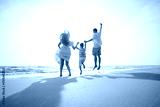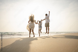 family, vacation, beach, happy family, holiday, asian, fun, happy, travel, outdoors, father, son, parents, mother, mom, fathers, Happy family jumping together on the beach at sunset.