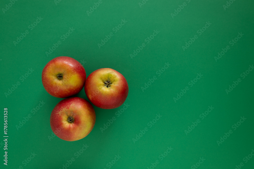 Fruits on a green background: apples