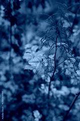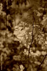 Macro image of red Goat's Beard foliage in Autumn, Derbyshire England