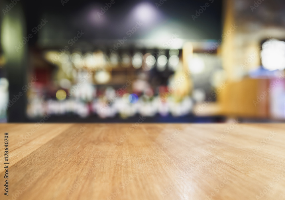 Table Top wooden Counter Blur Bar Beer pub background