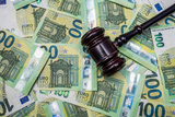 Gavel with euro money, justice system, legal finance, corruption and economic law concept