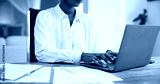 Person, hands and typing with laptop, documents or finance in home for budget planning or expenses. Freelancer, remote work or audit with computer, paperwork or bills for financial report in house