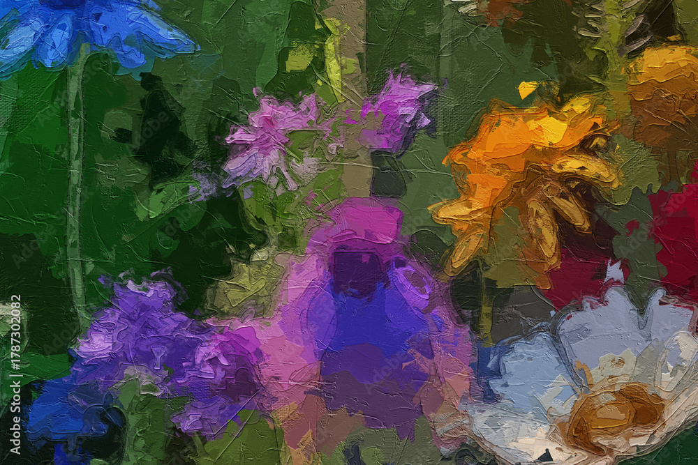 Various oil paintings, flowers, tulips, chrysanthemums, village houses, lakes, forests, figures, lotus flowers, lotus leaves, flying birds
