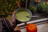 Cozy Autumn Afternoon with Homemade Green Vegetable Soup by the Window