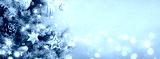 Christmas Ornaments On Tree - Lights Glowing In Fir Branches With Pine Cone And Green Abstract Background