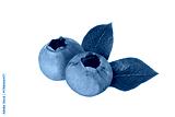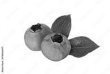 Two blueberries with green leaves on isolated transparent background for design. Ripe fresh juicy blue berries for cooking