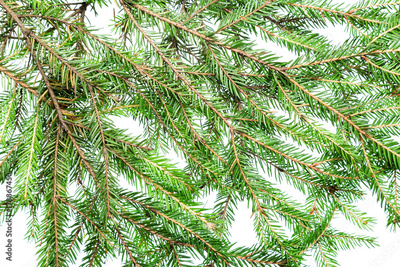 Many fir tree branches isolated on white background