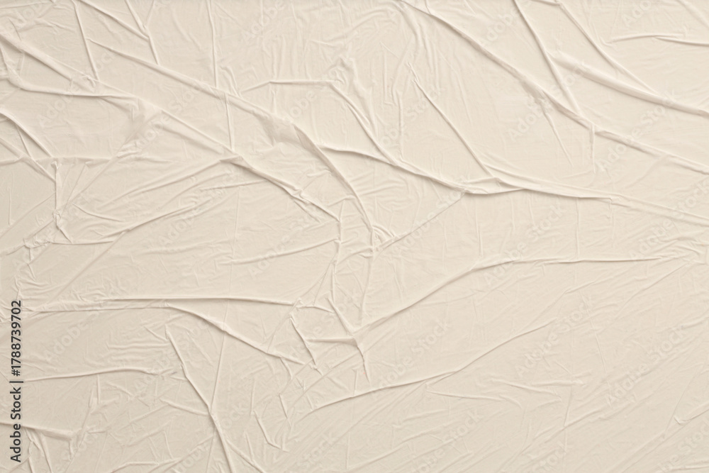 Empty crumpled wet craft paper blank texture relief wall texture background. Gray beige neutral color.