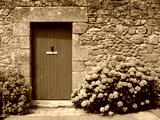 Mur de pierre et hortensias