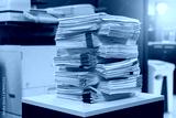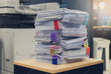 Business and finance concept of office working, Pile of unfinished documents on office desk, Stack of business paper
