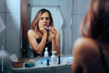 Woman Suffers from Sensitive Teeth Taking out her Retainer. Person holding her jaw because she has teeth grinding problems