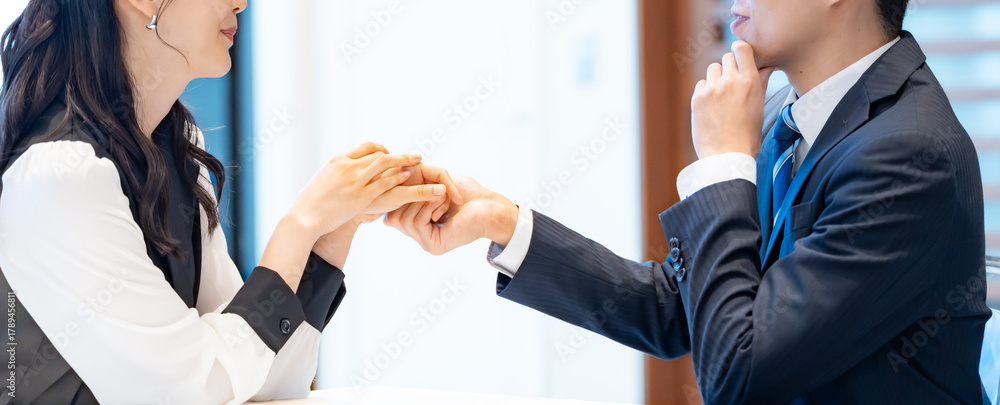 カフェやレストランでデートをしている大人の男女