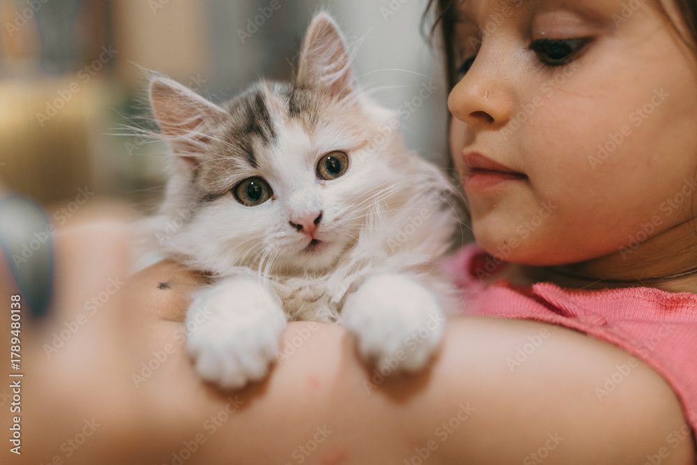 intimate pet portrait, closeup of woman and kitten showcasing whiskers and affectionate bond