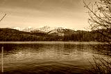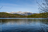 Pyramid Lake. Jasper National Park mountain range landscape, panoramic view. Canadian Rockies nature scenery background. Alberta, Canada. Mount Colin, Hawk Mountain.