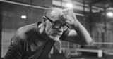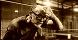 Tennis, tired and mature man with sweat for game, match and training for challenge. Indoor court, sports and senior person breathe with fatigue, rest and break for padel workout, exercise and fitness