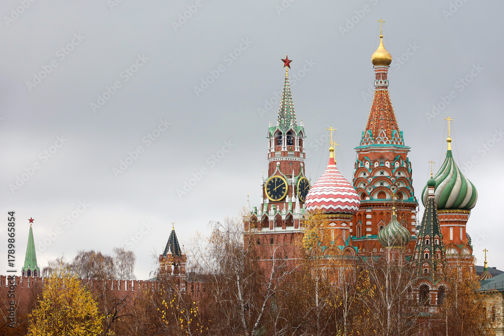 View to Moscow Kremlin and St Basil Cathedral at autumn