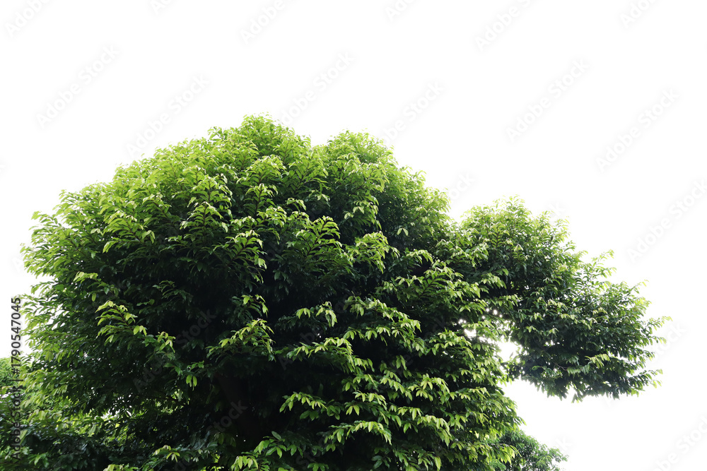Die-cut green leaves and white background