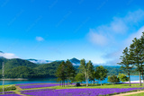 ラベンダー畑と湖 金山湖 南富良野 富良野