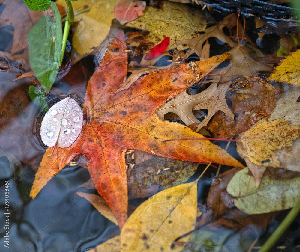 Autumn leaves in forest