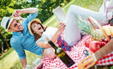 Couple enjoying picnic together. Love and tenderness, dating, romance, lifestyle concept