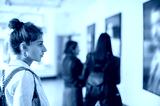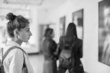 Group of woman looking at modern painting in art gallery
