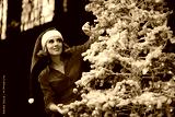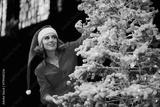Happy Woman Decorating an Impressive Christmas Tree. Event organizer preparing all the decor for the holidays celebration event