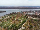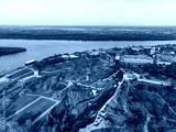 Drone view: The Belgrade city view from above the old Kalemegdan fortress, Serbia.