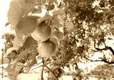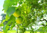 Raw passion fruit on vine