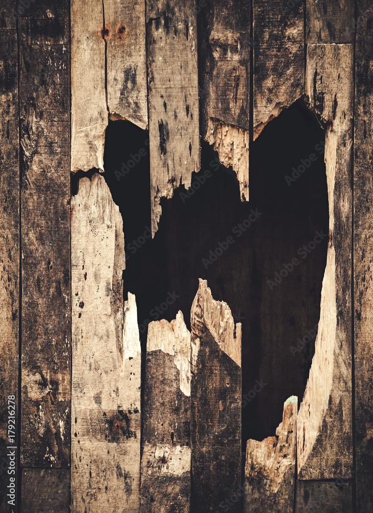 hole of broken grunge wood
