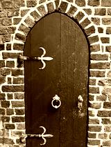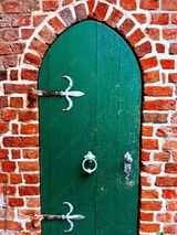 medieval door to the church, iron door, german old red brick church
