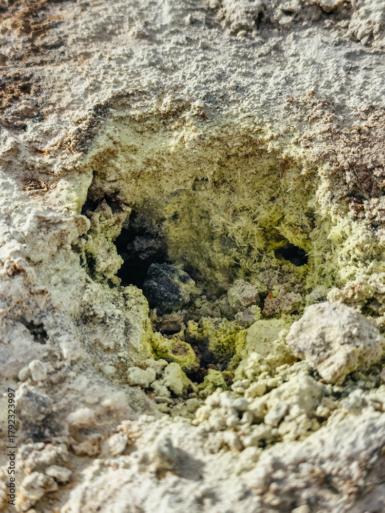 Close-up of sulfur mineral deposits, geothermal fields, Iceland