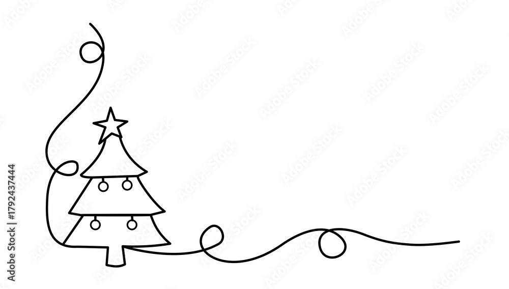 vector illustration of a christmas tree, christmas card with santa claus, christmas tree one line art vector, single line, ilustration white background