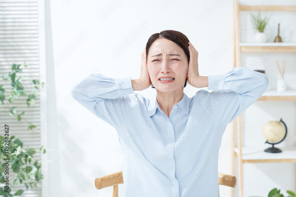 騒音から耳を塞ぐ女性