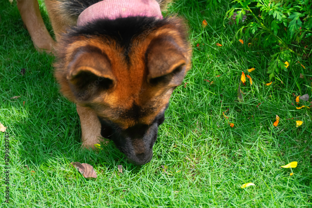 A beautiful German Shepherd dog enjoys watching over his backyard.
