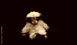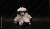 Cute Fluffy White Sheep Toy on Dark Background