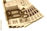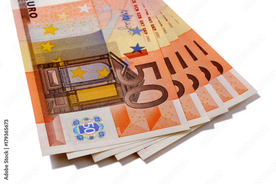 Euro fifty 50 currency money bill or banknote several fan shape isolated on white background photo