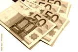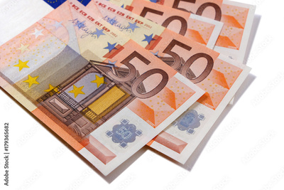 Euro fifty 50 currency money bill or banknote several fan shape isolated on white background photo