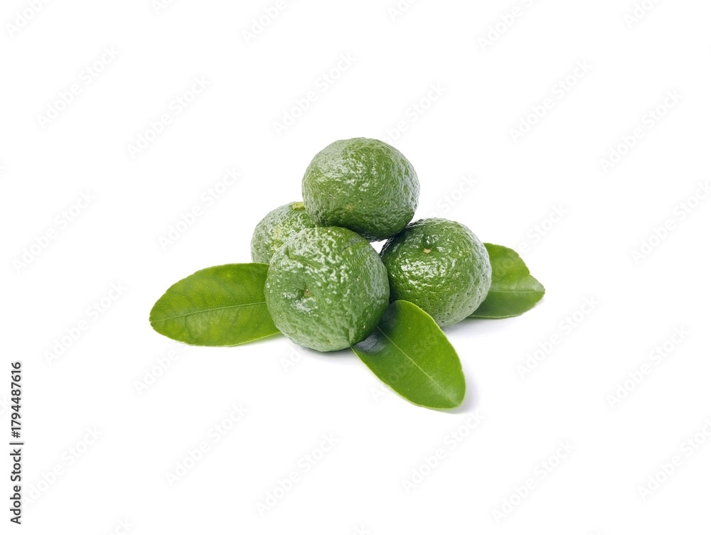 close-up of kaffir lime (also known as Makrut or Thai lime) isolated on white background